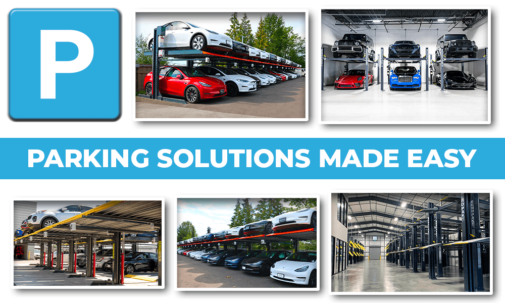 We carry all types of car parking lifts that will fit every need: 3 car stackers, 4 car stackers, 2-Post parking lifts, 4-Post parking lifts, scissor parking lifts, pit lifts, puzzle / semi-automatic lifts, and custom built subterranean residential and commercial systems. If you are a car dealership, car storage facility, hotel, valet service, a builder/developer or architectural engineer, we want to hear from you!!
